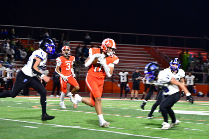 Columbus East’s Jared Brooks runs after catching a pass during a sectional game against Franklin Nov. 1, 2024, at Columbus East High School.