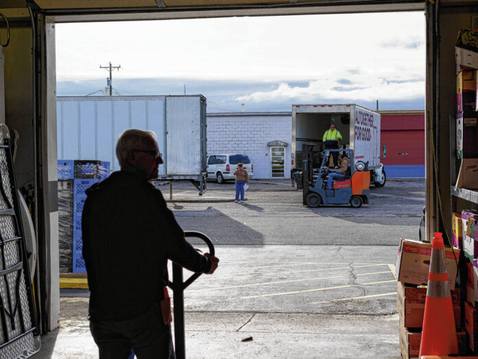 Mike Wolanin | The Republic Volunteers unload a food delivery to the Love Chapel Food Pantry from the Church of Jesus Christ of Latter-day Saints at the Love Chapel Food Pantry in Columbus, Ind., Monday, March 31, 2025.