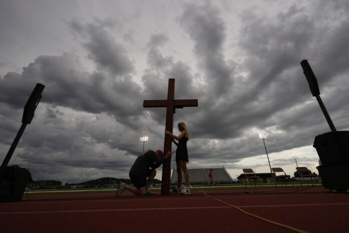 KERRVILLE, Texas (AP) — Several hundred people gathered for a worship ceremony at a high school stadium in Texas on Wednesday evening to remember the at least 120 people who died in the catastrophic flash floods over the July Fourth holiday, as well the many still missing.
