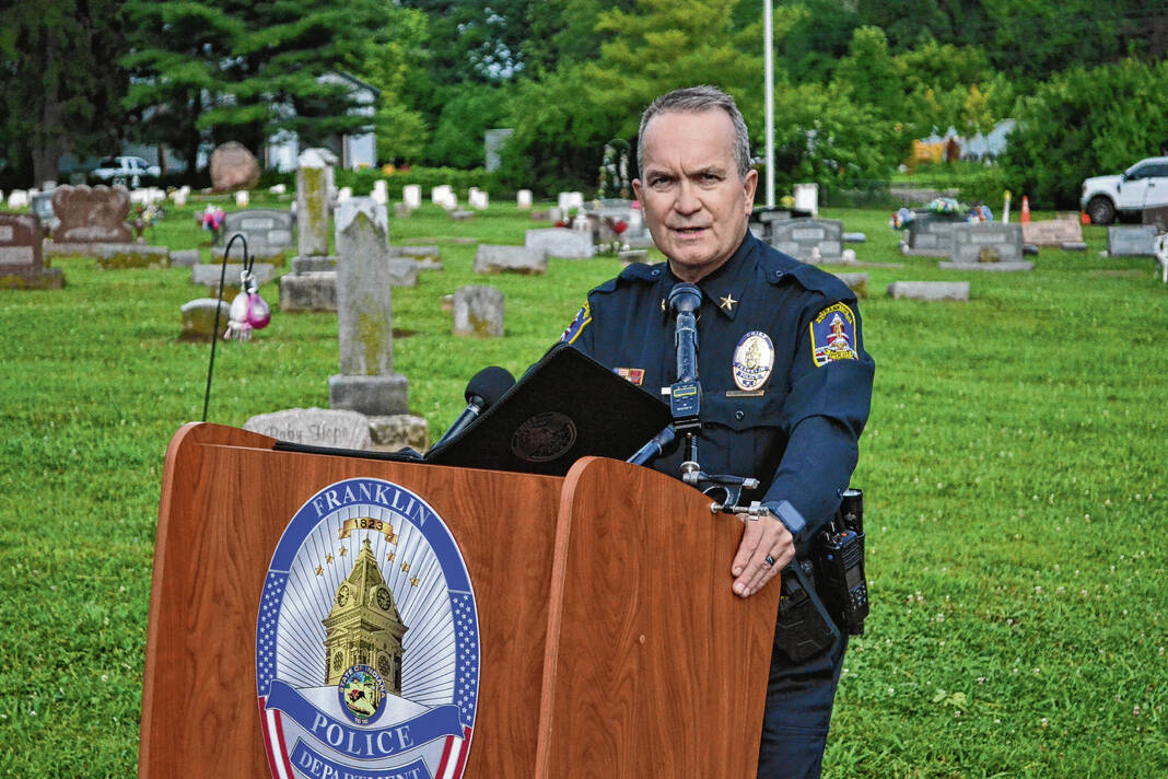 Franklin Police Chief Kirby Cochran gives an update on the Baby Hope investigation Monday at Greenlawn Cemetery. A cold case for more than 30 years, police have finally identified the parents of the newborn child found stabbed to death in a Temple Park trash can.