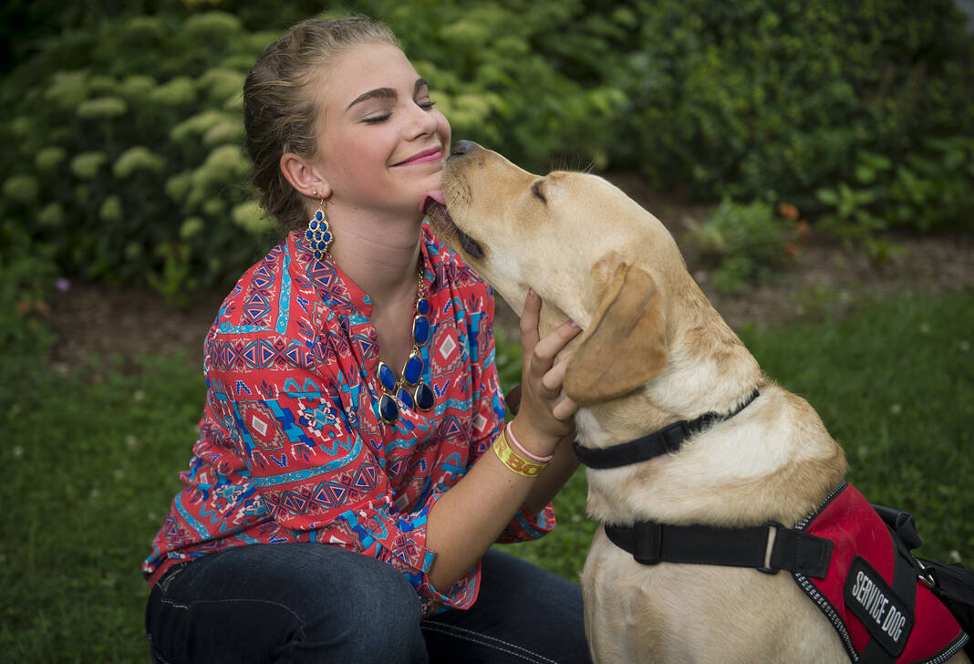 4-H member Halie Brumley gets a kiss from her service dog T.Y. on July 16, 2015.