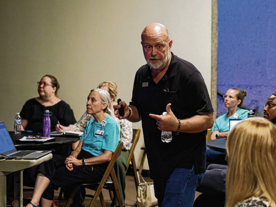 Mike Wolanin | The Republic Chuck Kime, executive director of Foundation for Youth, gives a presentation on Adverse Childhood Experiences during a Health Equity Ambassador open meeting at The Lex in Columbus, Ind., Tuesday, July 22, 2025.