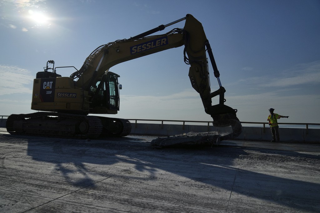 BALTIMORE (AP) — Demolition crews are using giant saws, backhoes and other heavy equipment to remove large sections of the remaining pieces of Baltimore’s Francis Scott Key Bridge, which collapsed last year after a container ship lost power and veered off course, killing six people.