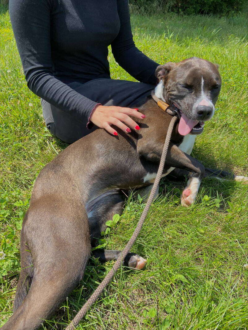 Cassidy is a gentle lady looking for her forever home. She loves affection, is snuggly, and quickly warms up once she realizes you’re friends! She would benefit from a home that can give her time to learn, and she’d even enjoy having another canine companion in the home.