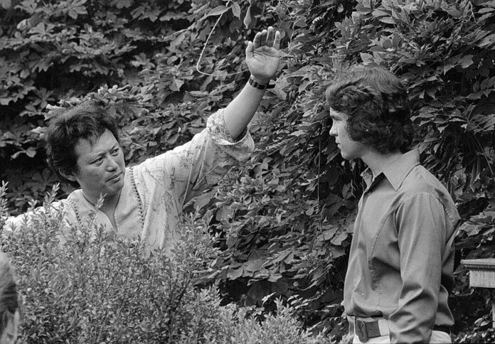 California photographer Rocky Gunn, left, positions a model during a photoshoot session at Irwin Gardens in Columbus on Aug. 5, 1975.