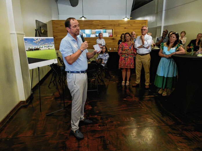 Mike Wolanin | The Republic Mark Elwood addresses guests during a capital campaign kick off event to raise money for a new Columbus Animal Care Services building at Bespoke Events and Experiences in Columbus, Ind., Tuesday, Aug. 12, 2025. Elwood is the campaign chair.