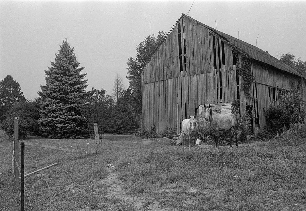 Horses and an old barn on a farm northwest of Columbus on Aug. 15, 1975, might easily be mistaken as a scene from an earlier time.