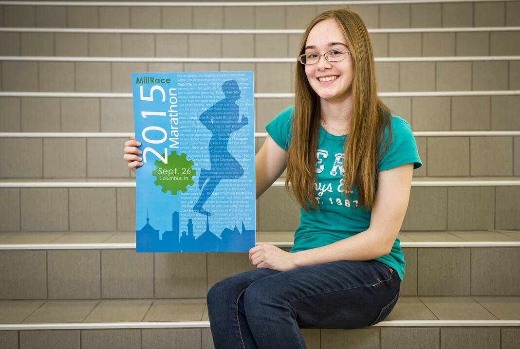 Columbus East student Rachel Stull, pictured on Aug. 15, 2015, designed the official 2015 Mill Race Marathon poster.