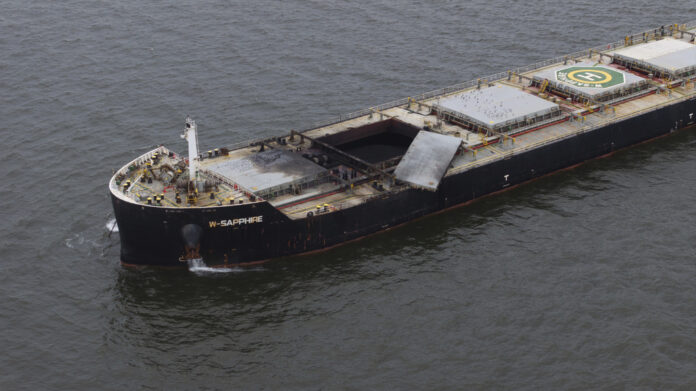 The 751-foot (229-meter) merchant vessel W-Sapphire was en route from Baltimore to East Africa, according to marine tracking websites. It was expected to arrive in the Port of Mauritius in about a month. Built in 2012, the ship is currently sailing under a Liberian flag. Officials said it was transporting coal.