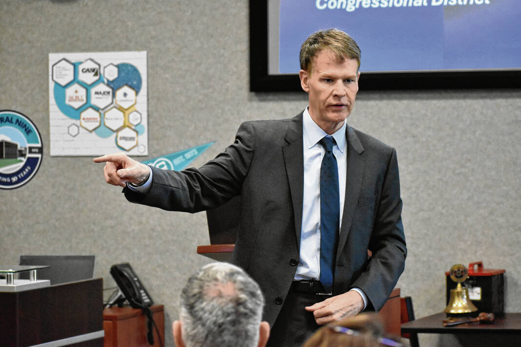 U.S. Rep. Jefferson Shreve, R-Indiana, points while speaking to members of the Greenwood Rotary Club on Monday at Central Nine Career Center.