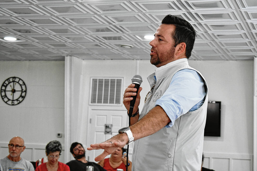 Lt. Gov. Micah Beckwith speaks to attendees at the Cordry Sweetwater Clubhouse on Saturday.