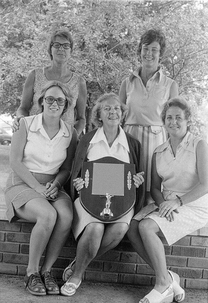 Members of the Harrison Lakes Country Club team who won the South Central Women’s Golf Association team championship on Aug. 21, 1975, front row from left are Susan Emerson, Rosemary Anderson and Mary Emerson. In the back row are June Davis and Judy Jones.