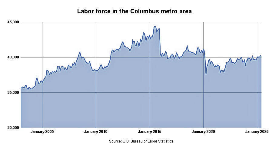 A shortage of skilled labor could also be playing a role, experts said. The Columbus metro area’s labor force peaked in 2015 and has yet to return to the same levels, according to the U.S. Bureau of Labor Statistics.