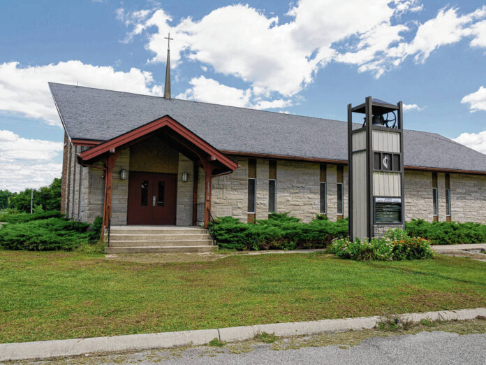 Mike Wolanin | The Republic An exterior view of Newbern United Methodist Church in Newbern, Ind,, Tuesday, Aug. 26, 2025.
