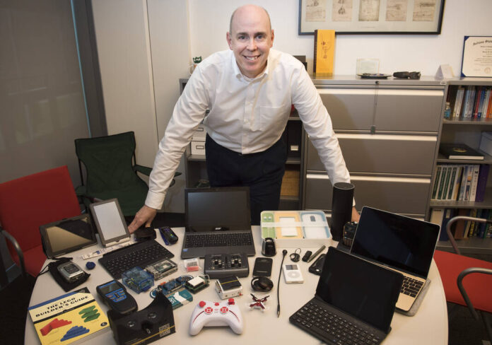 Steven B. Combs, Ivy Tech Community College’s campus president in Columbus, pictured Aug. 26, 2015, describes the blog he writes about technology, reviewing the newest in gadgets, electronics, apps and more.