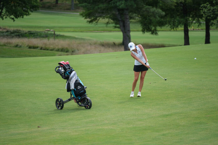 Columbus North’s Erin Hopkins hits a chip shot on No. 4 during a golf match against Perry Meridian Aug. 12, 2024 at Harrison Lake Country Club. Harrison Lake will host a major event on the LPGA Legends Tour in 2026.
