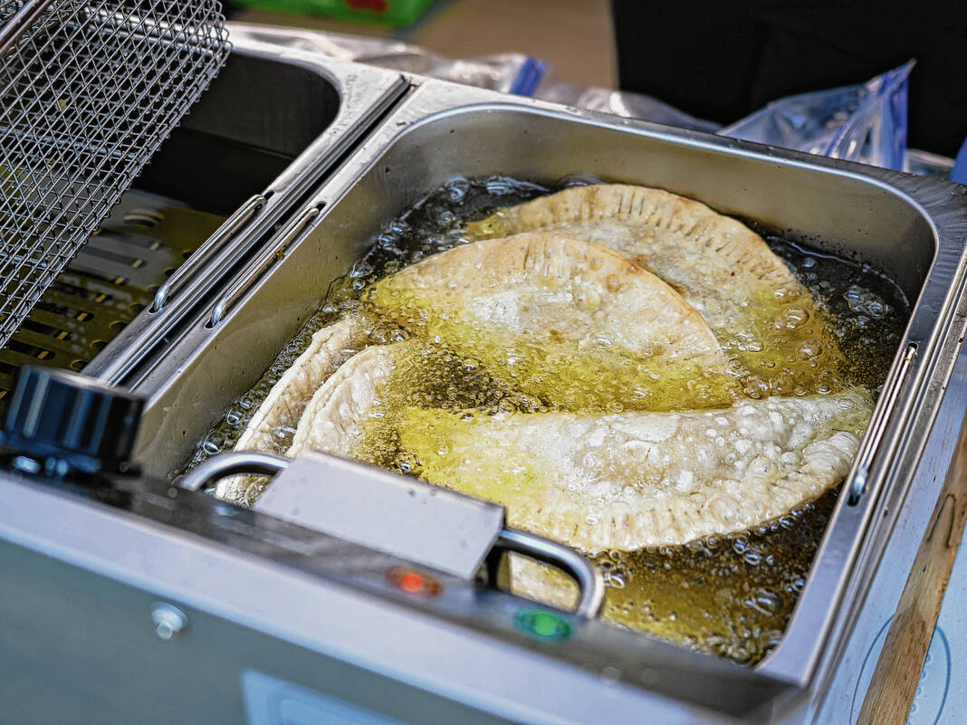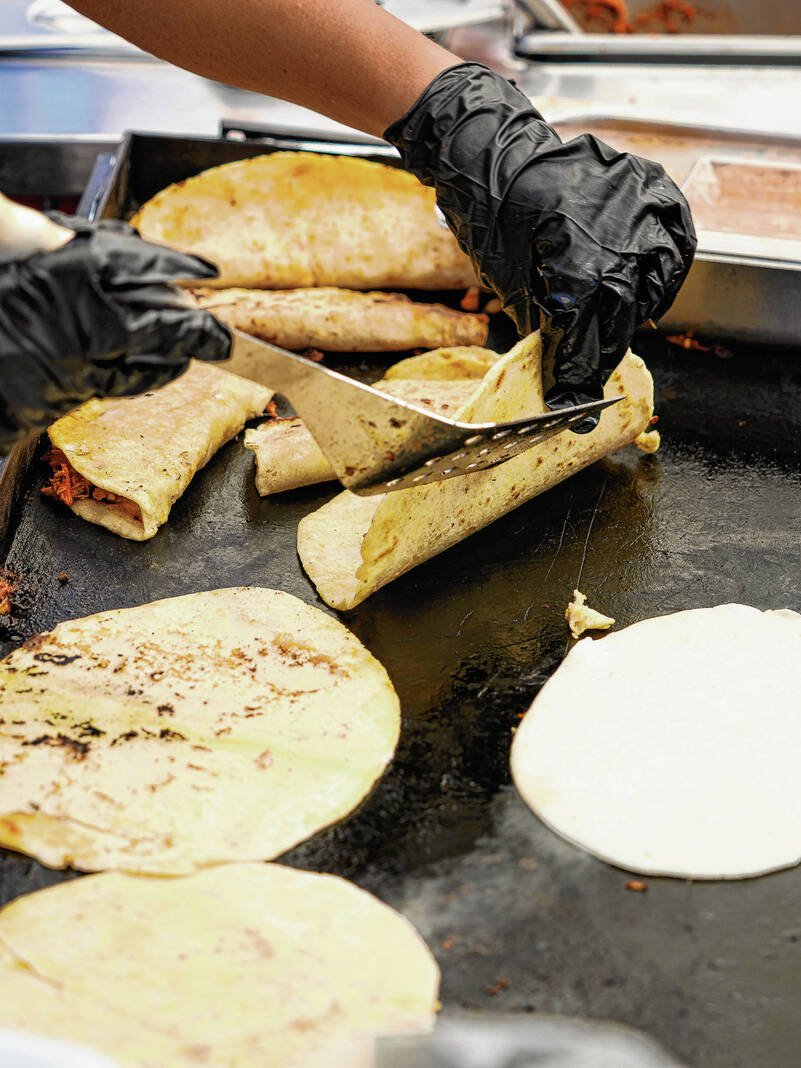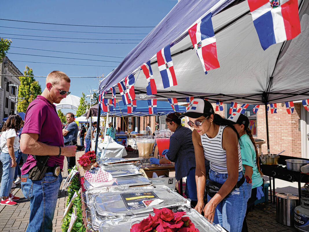 Mike Wolanin | The Republic Food is prepared at a booth during Fiesta Latina on Fourth Street, Friday, Sept. 12, 2025, in Columbus, Indiana.