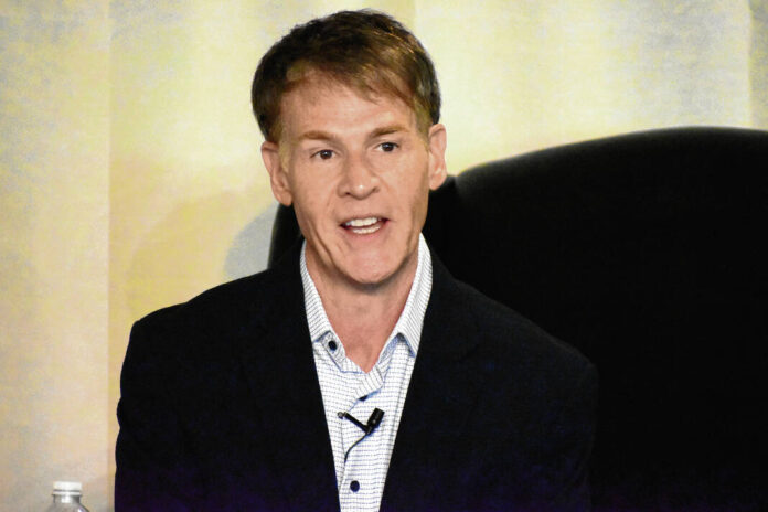 U.S. Rep. Jefferson Shreve, R-Indiana, speaks about his first eight months in office during Aspire Johnson County’s Legislation Matters luncheon, Thursday, Aug. 21, 2025, at Valle Vista Golf Club in Greenwood, Indiana. (Noah Crenshaw | Daily Journal)