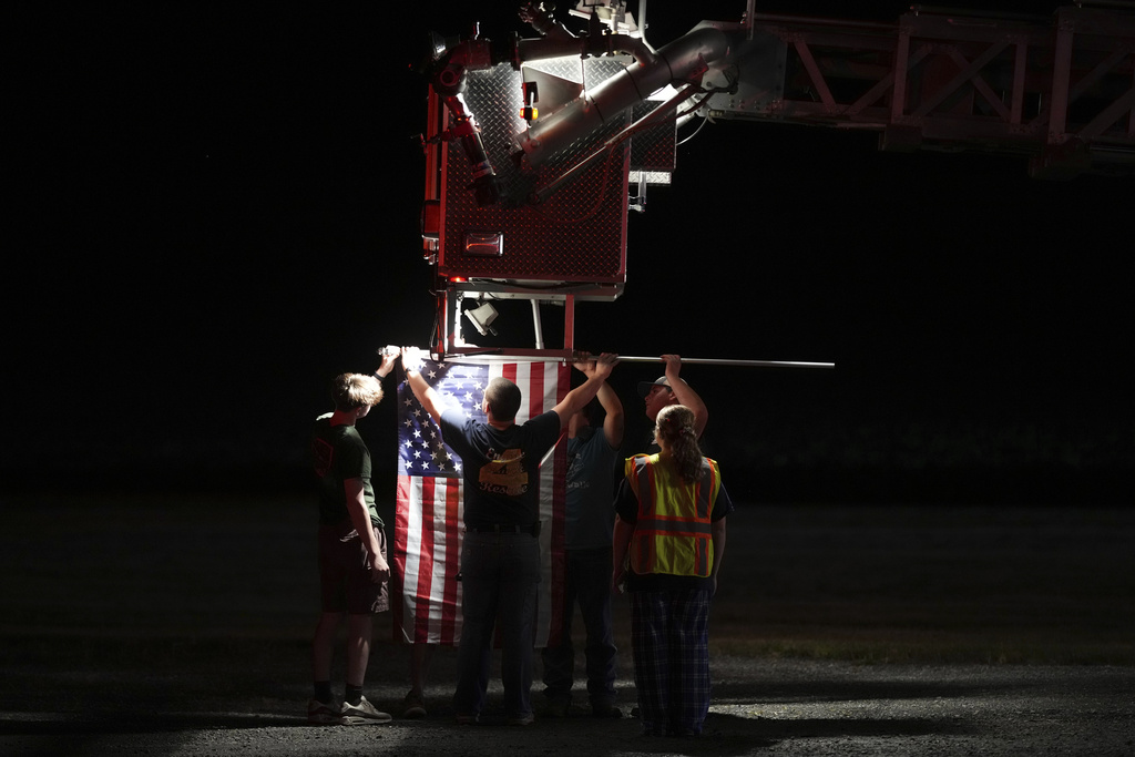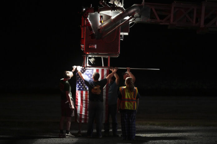 Hours after the violence, community members held American flags and saluted as police and emergency vehicles formed a procession to the coroner’s office.