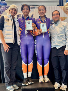 Luis Marimoto Taqueushi and Kiefer competed in the Fire division at 333m, 500m and 777m distances, finishing third and sixth, respectively for men. Luis Marimoto Taqueushi also qualified for US Short Track Age Group National Championship this Spring and earned the Sprint Cup’s Fastest 500 Male title.