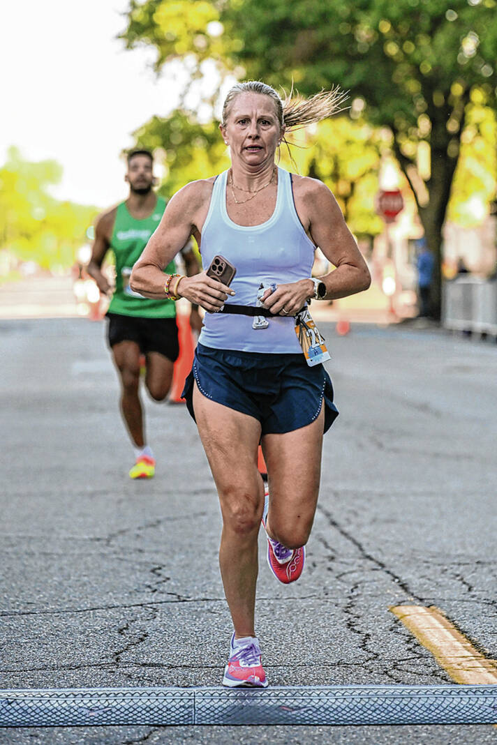 Tera Moody of Bargersville won the women’s half marathon in 1:19:19. The 44-year-old mother of two and a Chicago native, ran for Colorado University and professionally and finished fifth in 2008 Olympic Marathon Trials.