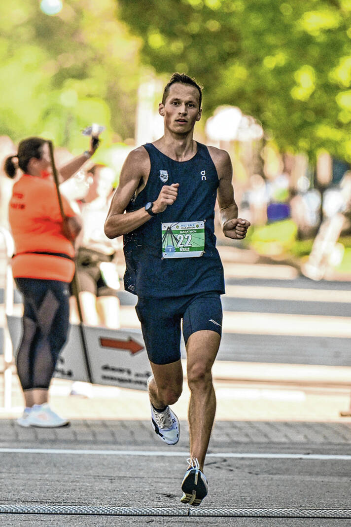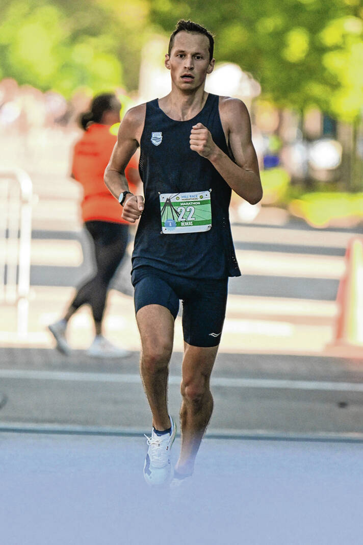 Beakas won Carmel Marathon in 2023. He is aiming for the U.S. Olympic Trials cut of 2:16, which is about two minutes faster than his personal-best.