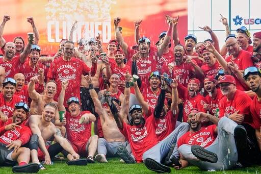 The Cincinnati Reds earned their first playoff berth since 2020 on Sunday, setting off a wild, champagne-soaked celebration. It’s the first time in franchise history the Reds have clinched a playoff berth on the final day of the regular season, according to the Elias Sports Bureau.