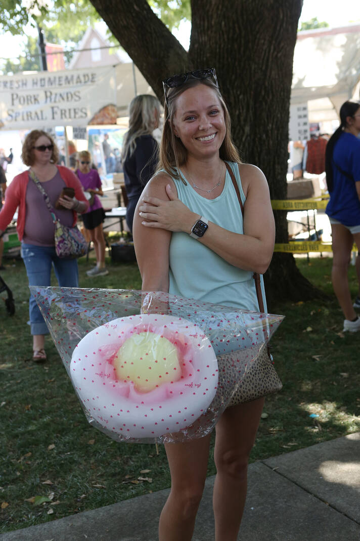 Carla Clark | For The Republic Tessa Tucker holds her Candy Art cotton candy flower during the 57th Annual Hope Heritage Days, Hope, Ind., Sunday, September 28, 2025.