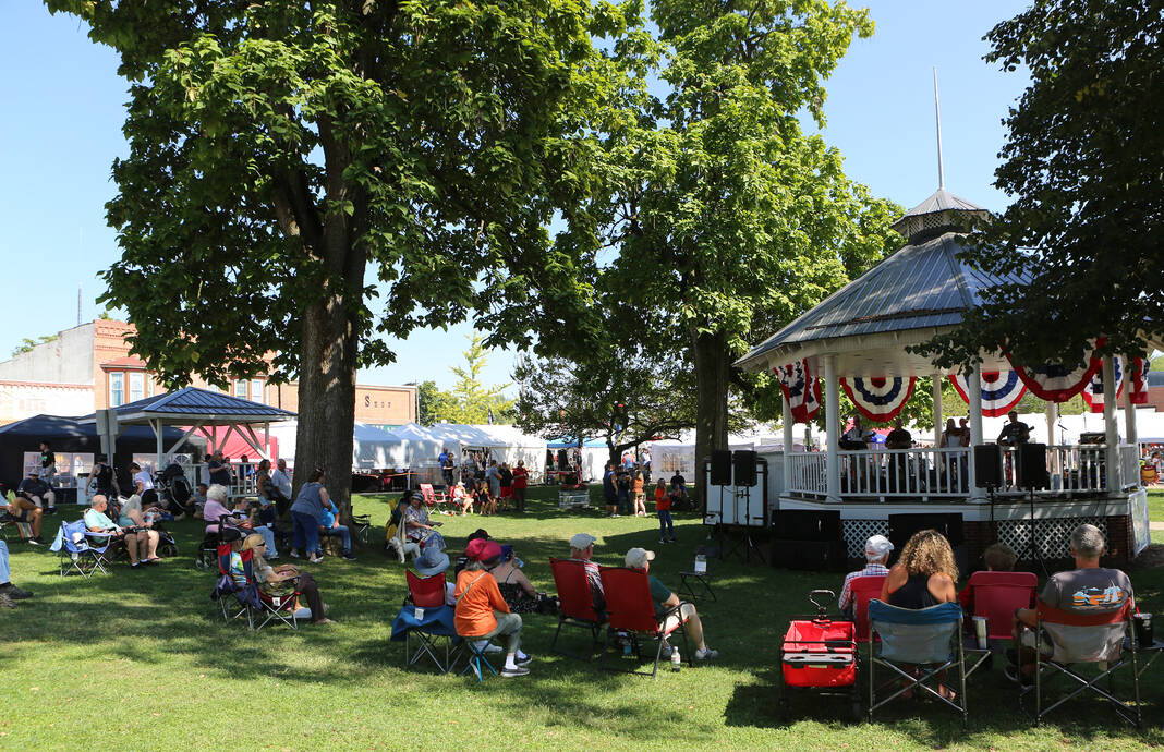 Carla Clark | For The Republic People gather around the bandstand to listen to the Cottonpatch Band perform during the 57th Annual Hope Heritage Days, Hope, Ind., Sunday, September 28, 2025.