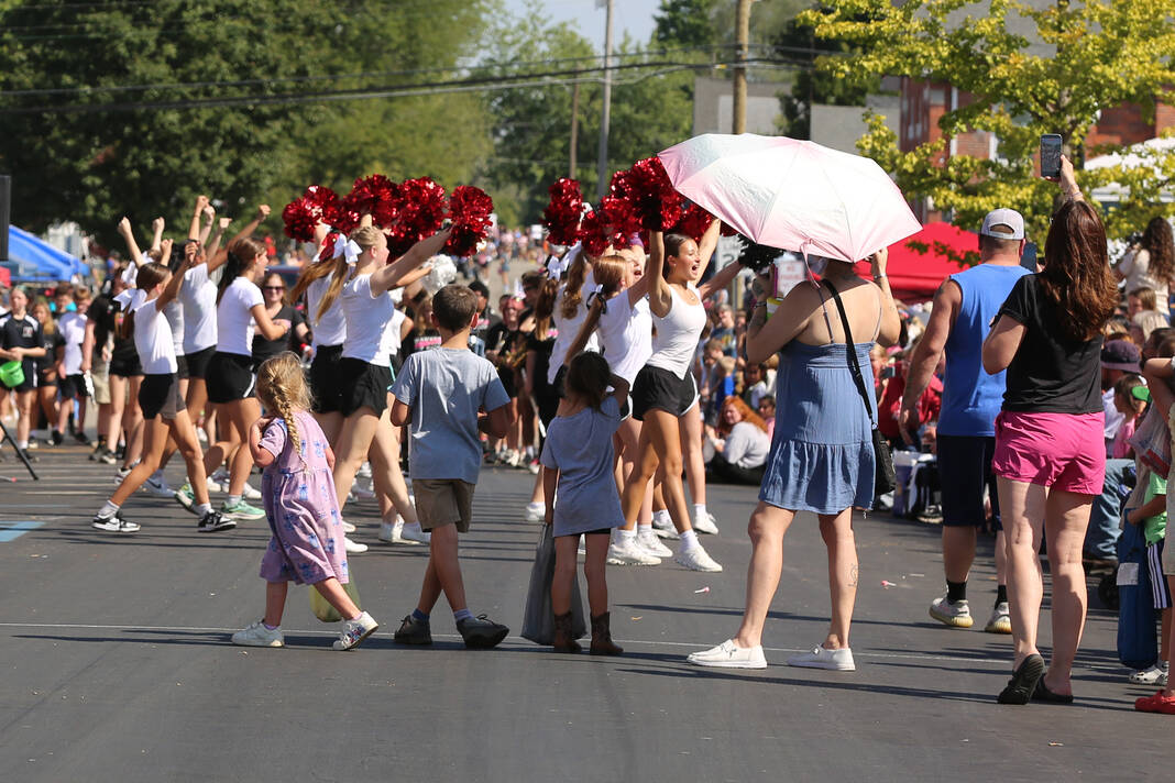 Carla Clark | For The Republic People watch the Hauser Cheerleading Team perform during the 57th Annual Hope Heritage Days parade, Hope, Ind., Sunday, September 28, 2025.