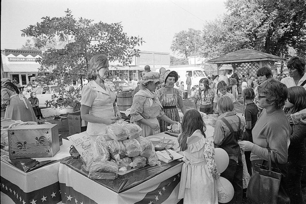 The Hope Firemen’s Ladies Auxiliary sold homemade bread during the Hope Heritage Days held on Sept. 27 and 28, 1975. Members helping were, from left, Geneva McCarty, Charlene Garrison and Norma Stone.