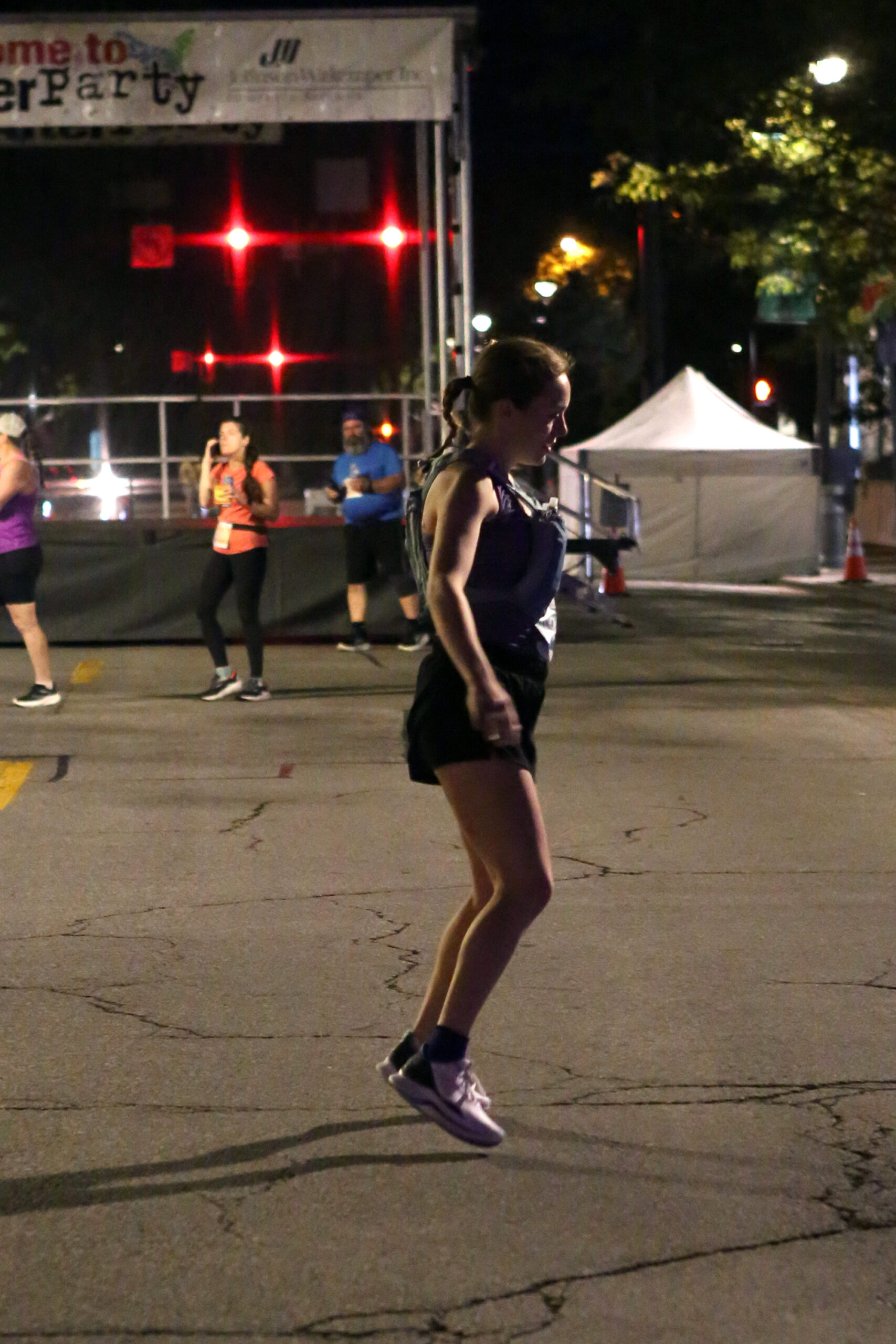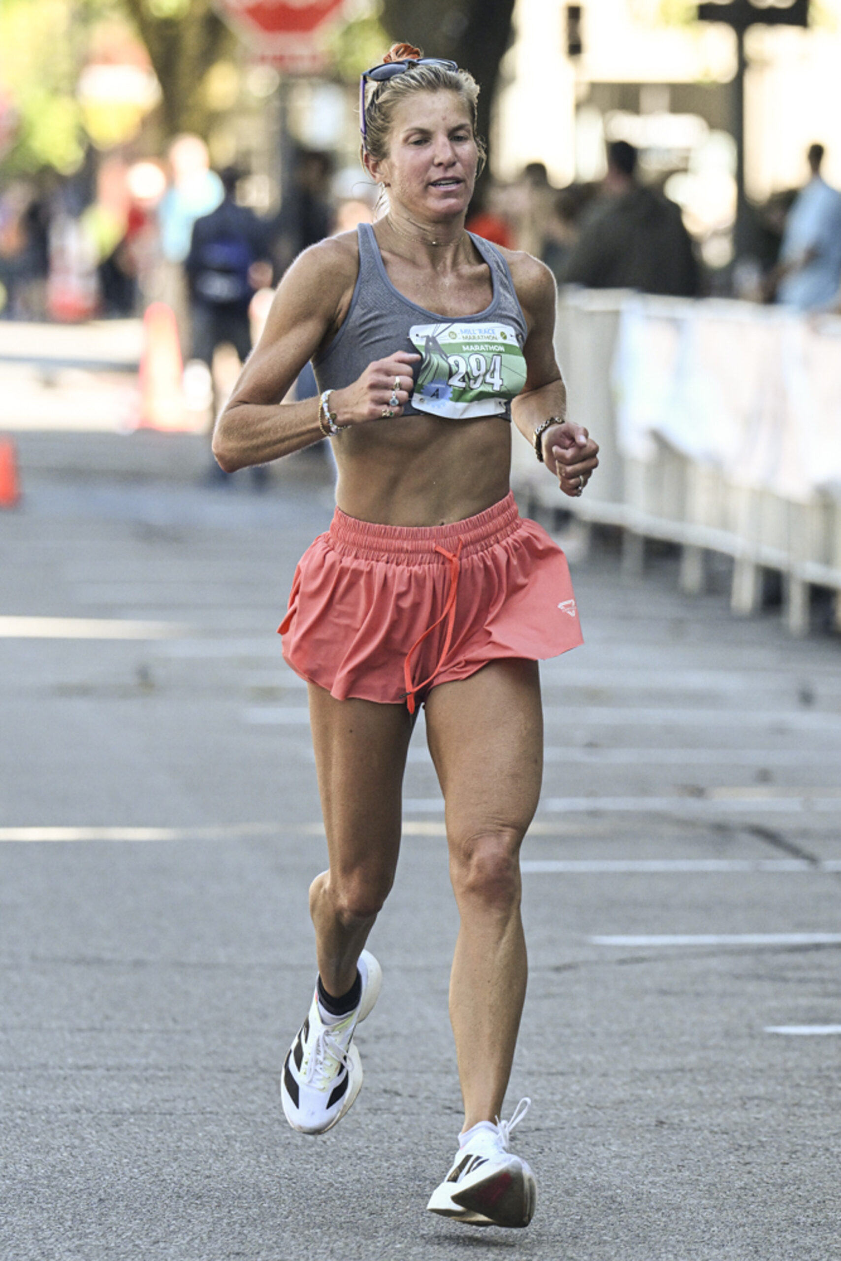 Rachel Brougher warms up before the Mill Race Marathon, Columbus, Ind., Saturday, September 27, 2025