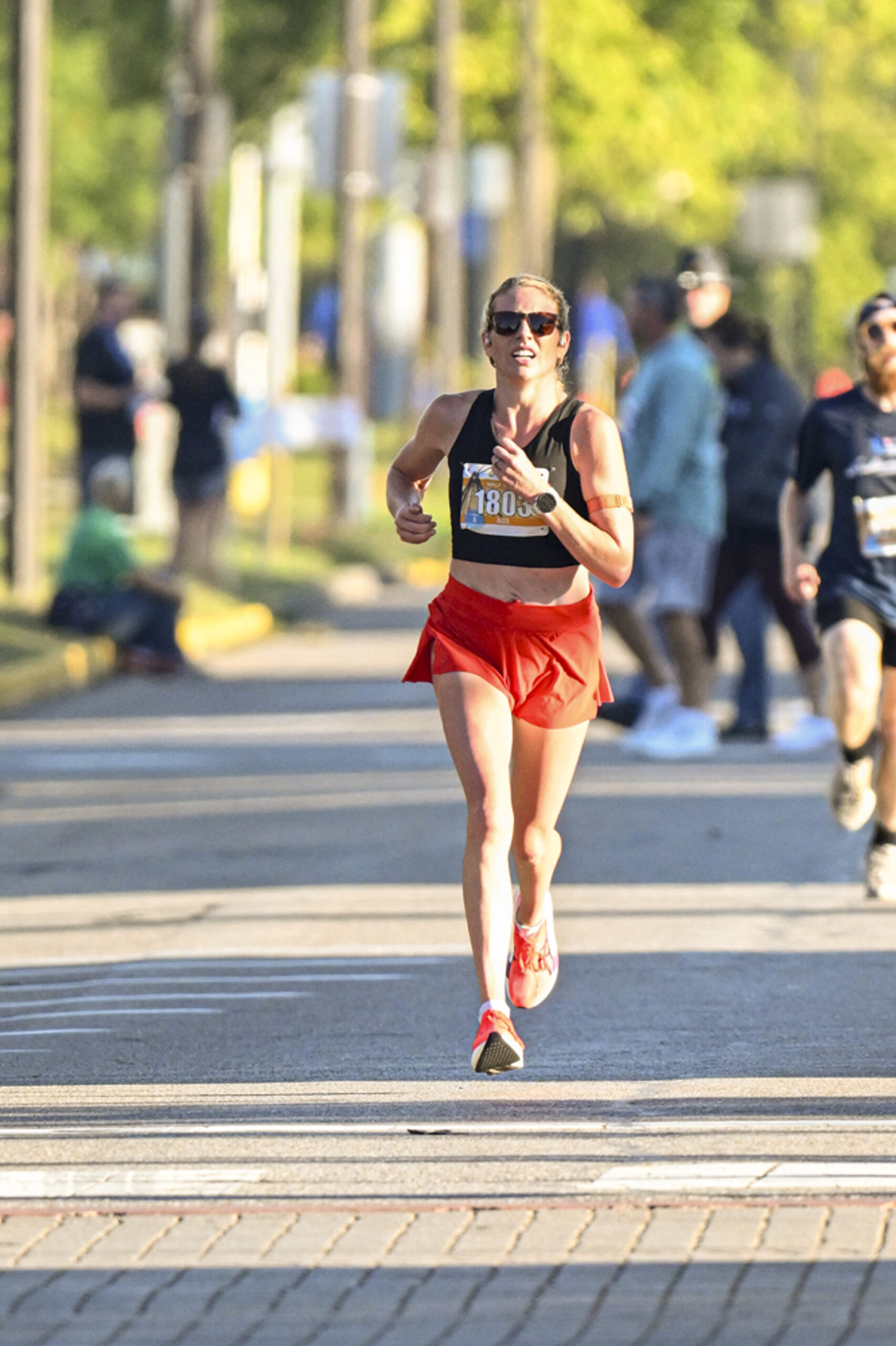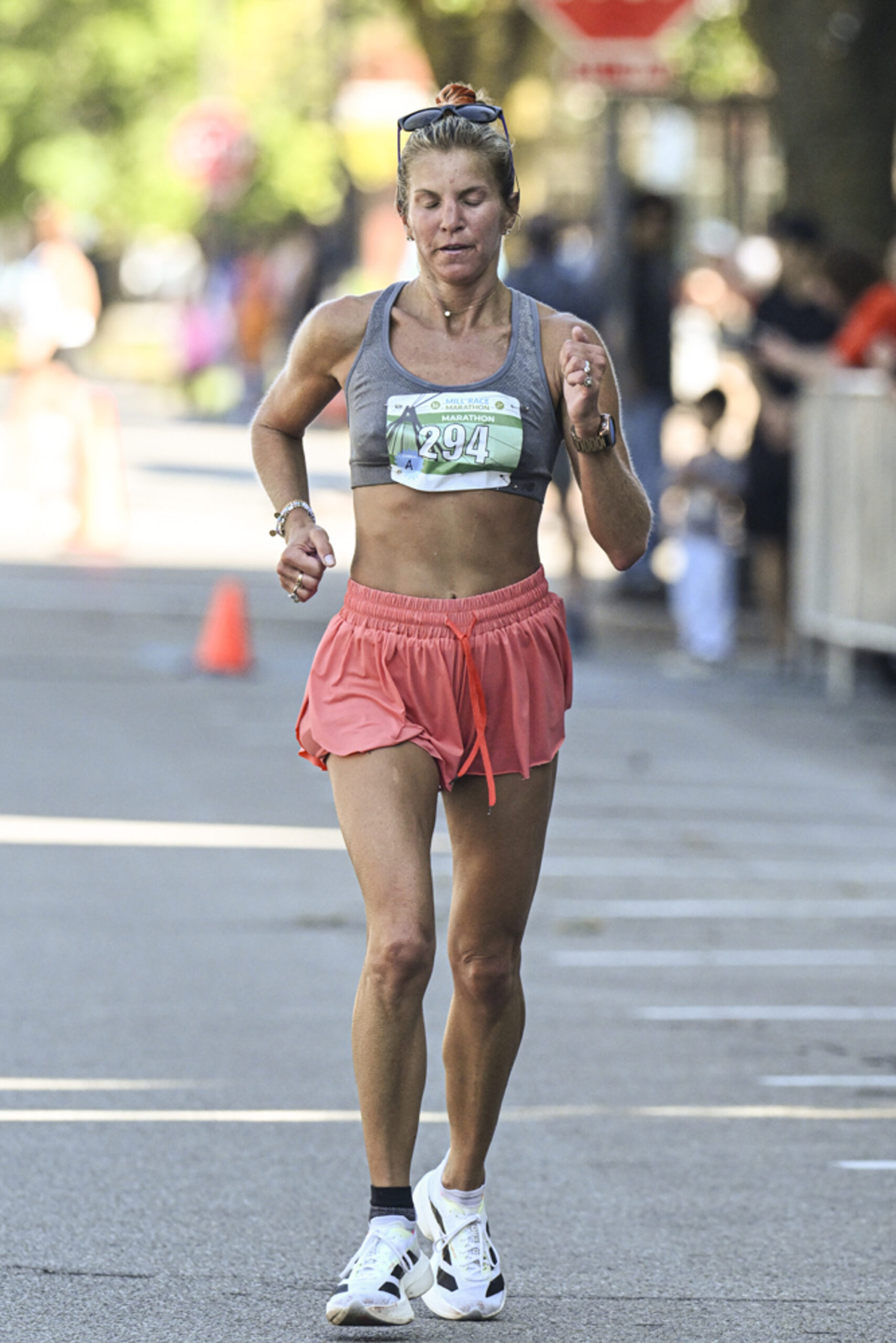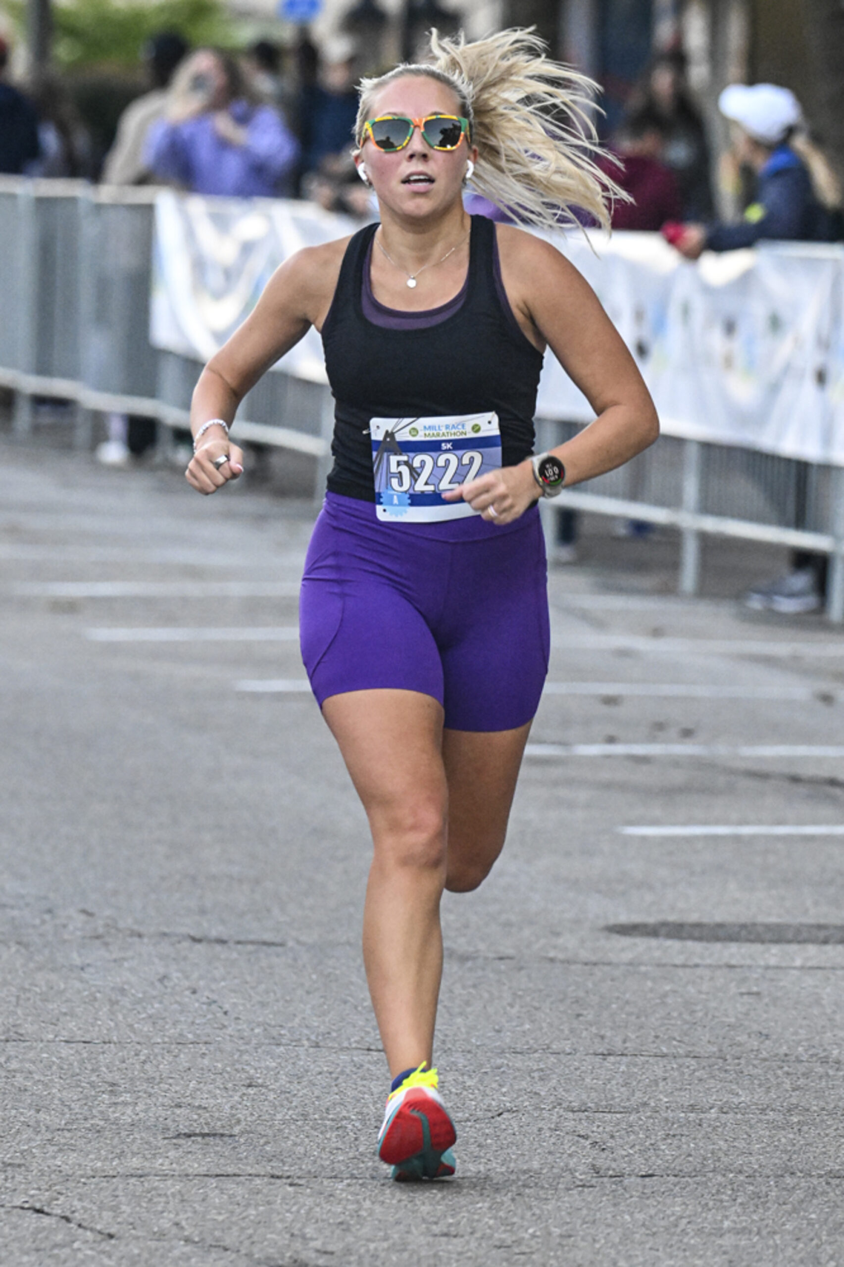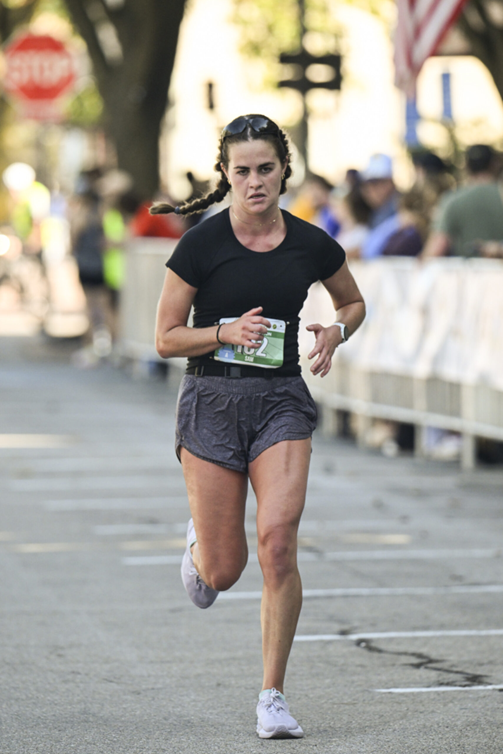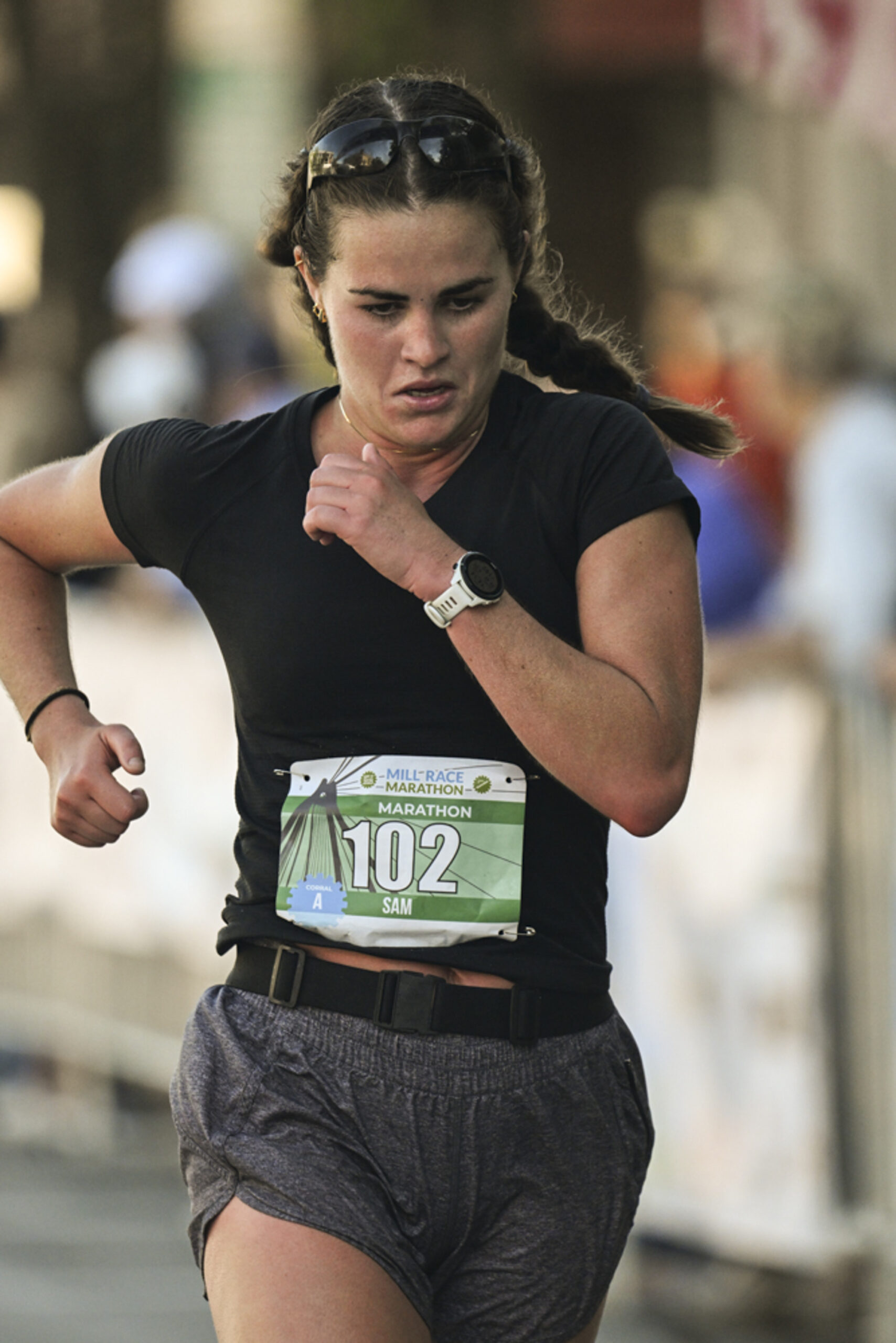 2025 Mill Race Marathon, Women’s 3rd place finisher, Samantha Jacobi in the final leg to the finish line.