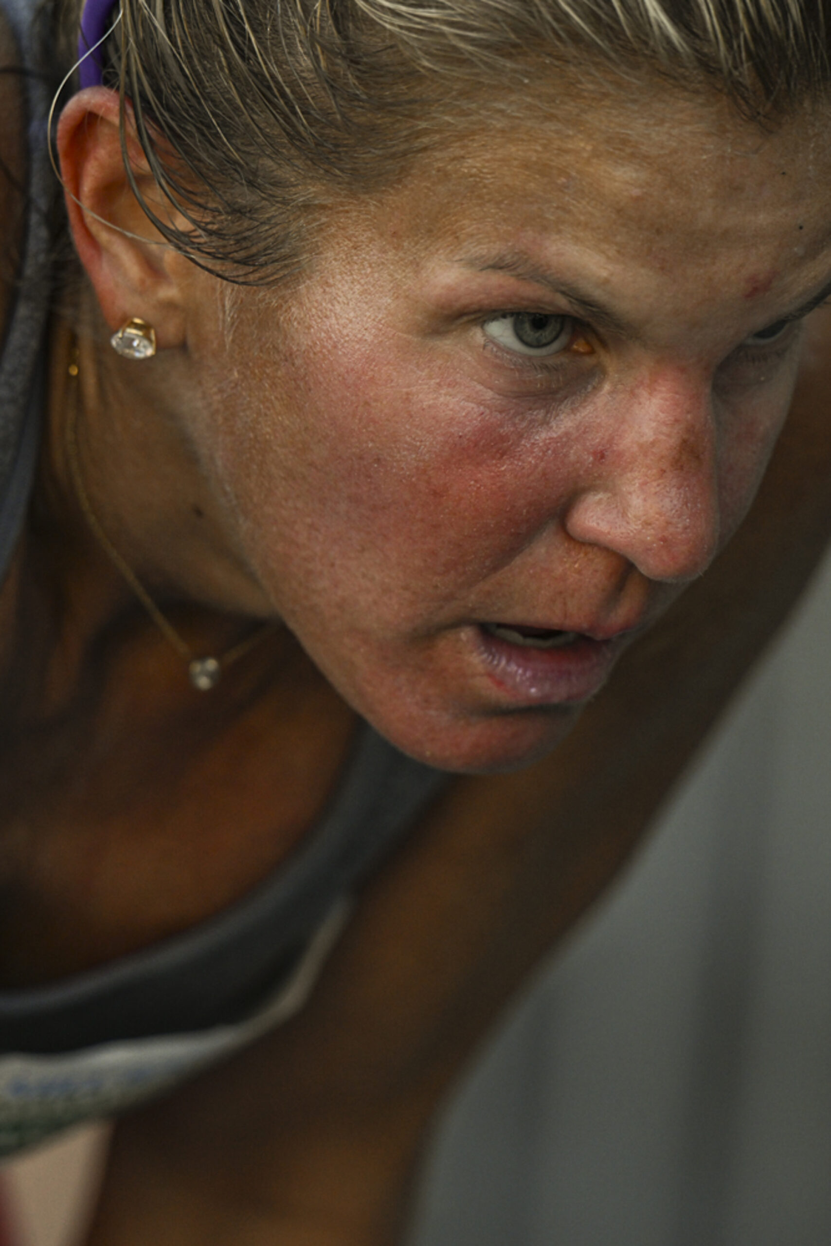 2025 Mill Race Marathon, Women’s 2nd place finisher, Natalie Leverone takes a moment to collect herself.