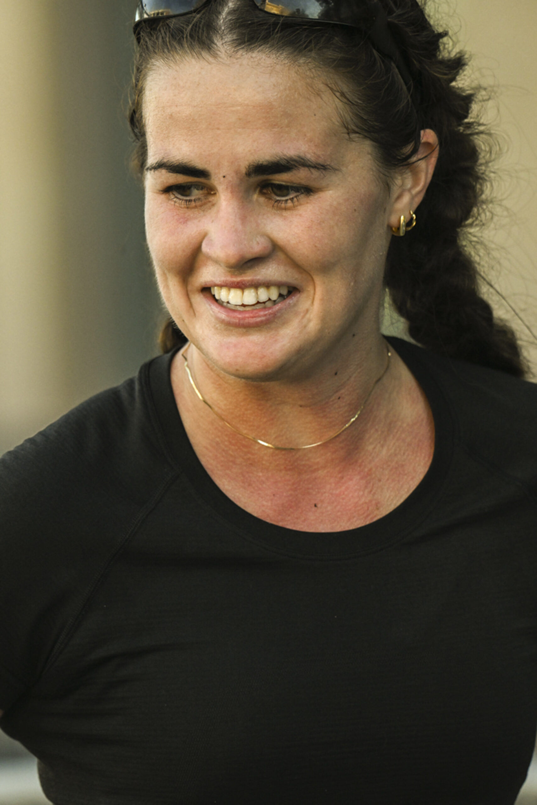 2025 Mill Race Marathon, Women’s 3rd place finisher, Samantha Jacobi smiles after finishing.