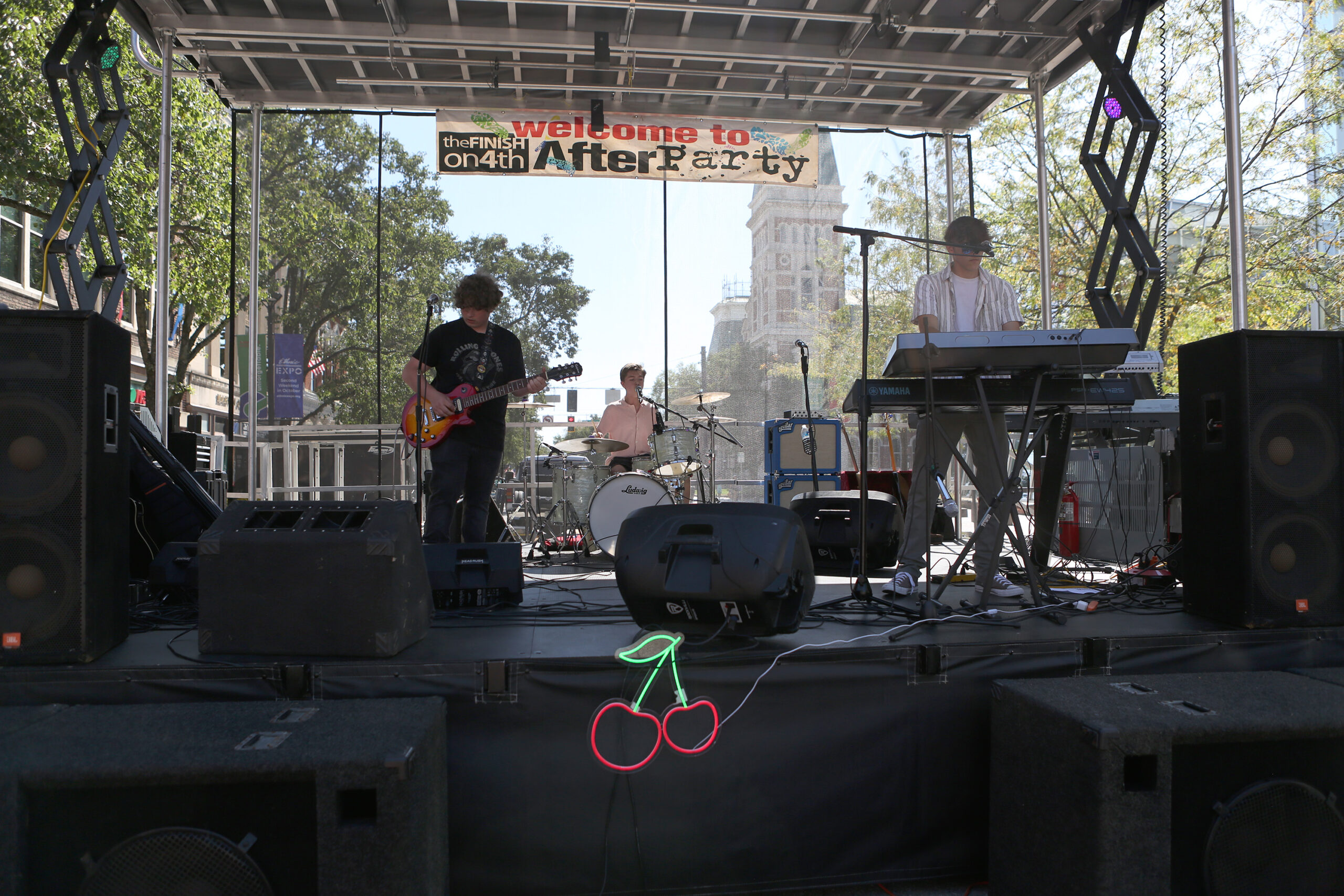 The Cherry's perform, playing 50's and 60's music, at Finish on 4th during the Mill Race Marathon, Columbus, Ind., Saturday, September 27, 2025.