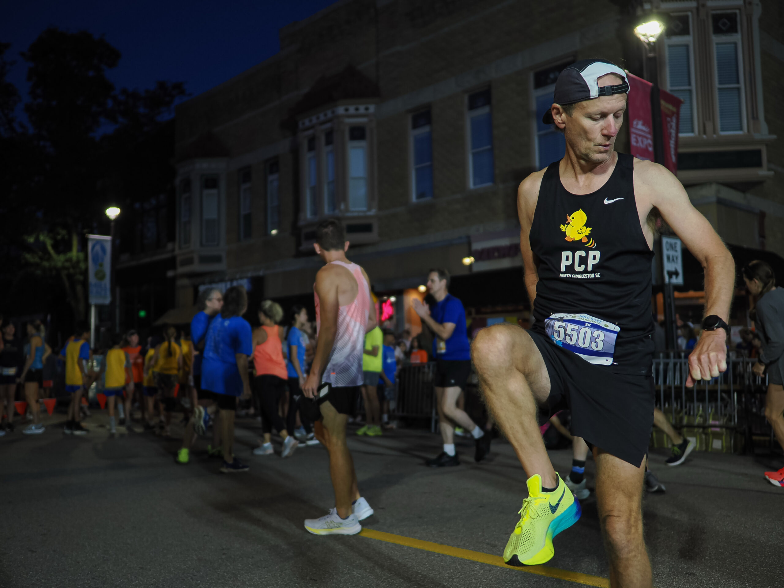 Craig Keyworth, of Atlanta, Georgia, waits to compete in the half marathon portion of the Mill Race Marathon in downtown Columbus, Ind., Sept. 27, 2025.