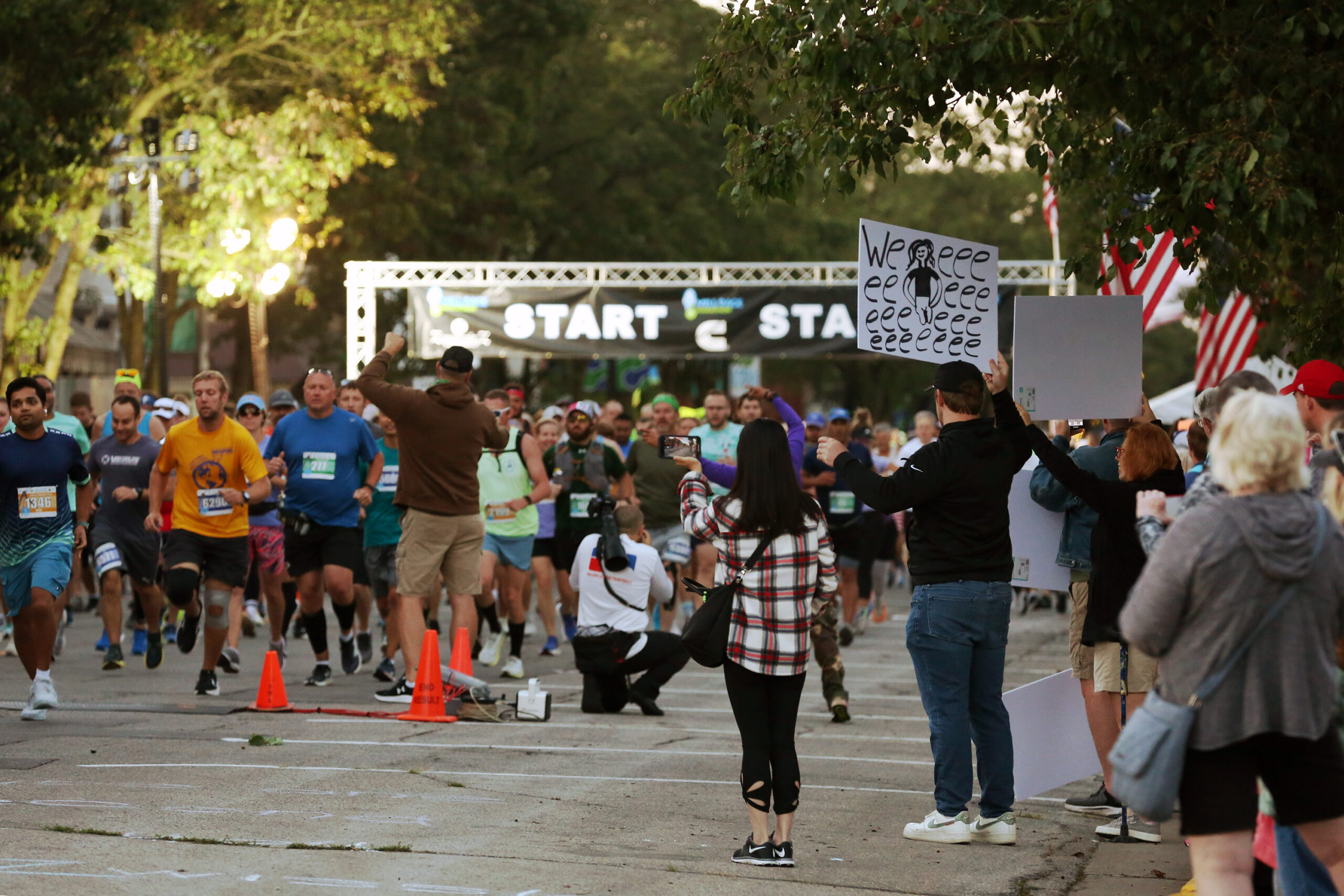 InterOculus frames the runners during the Mill Race Marathon, Columbus, Ind., Saturday, September 27, 2025