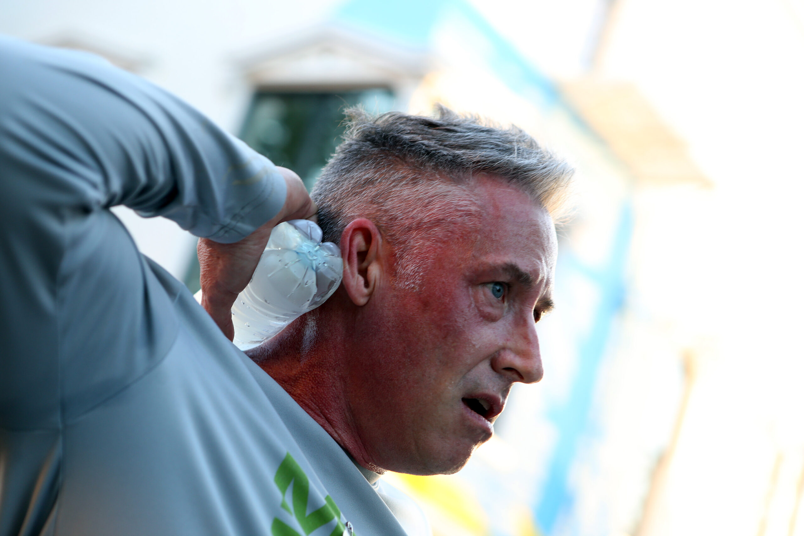 Kameron Struble cools off during the Mill Race Marathon, Columbus, Ind., Saturday, September 27, 2025