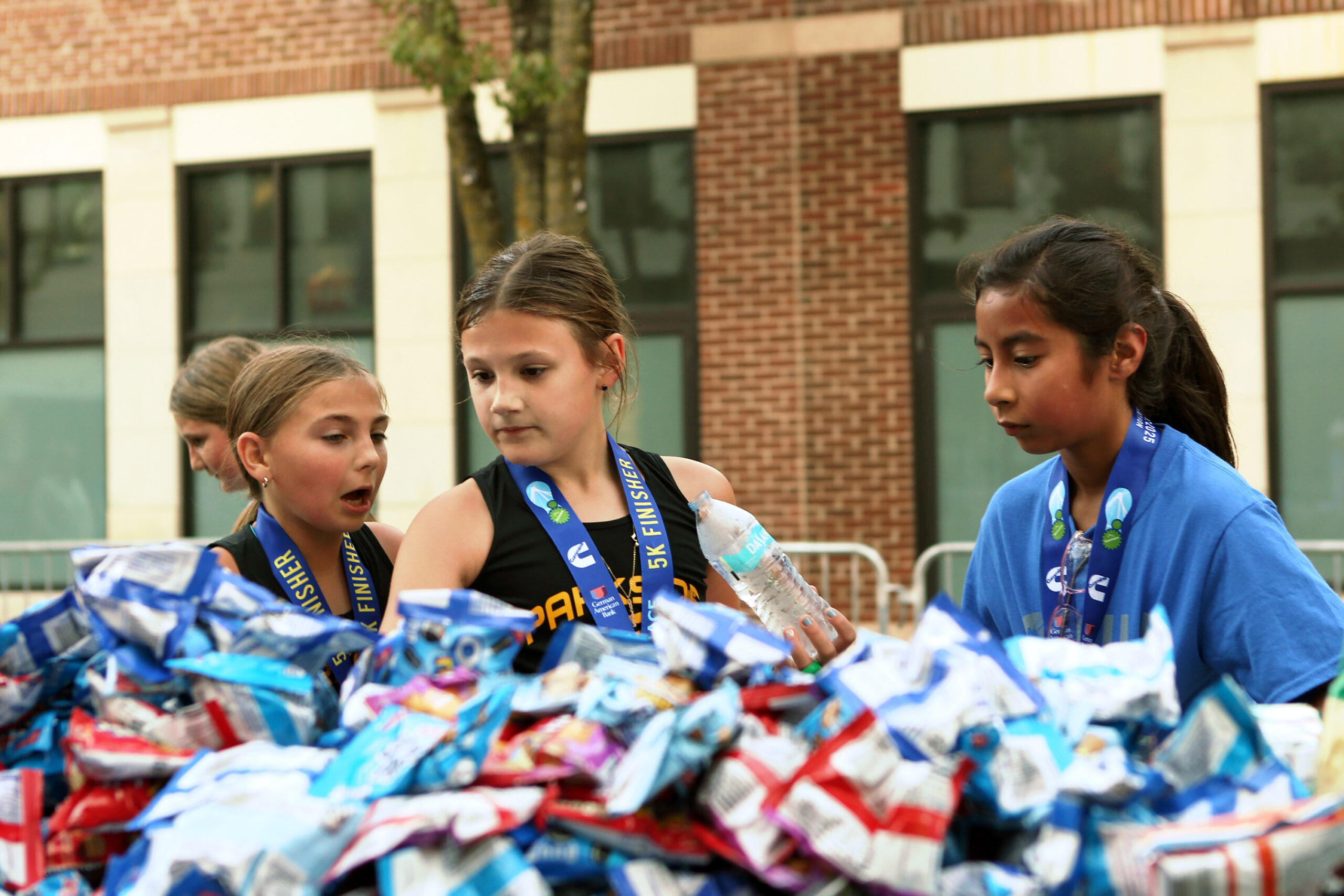 Runners check out the stacks of snacks during the Mill Race Marathon, Columbus, Ind., Saturday, September 27, 2025