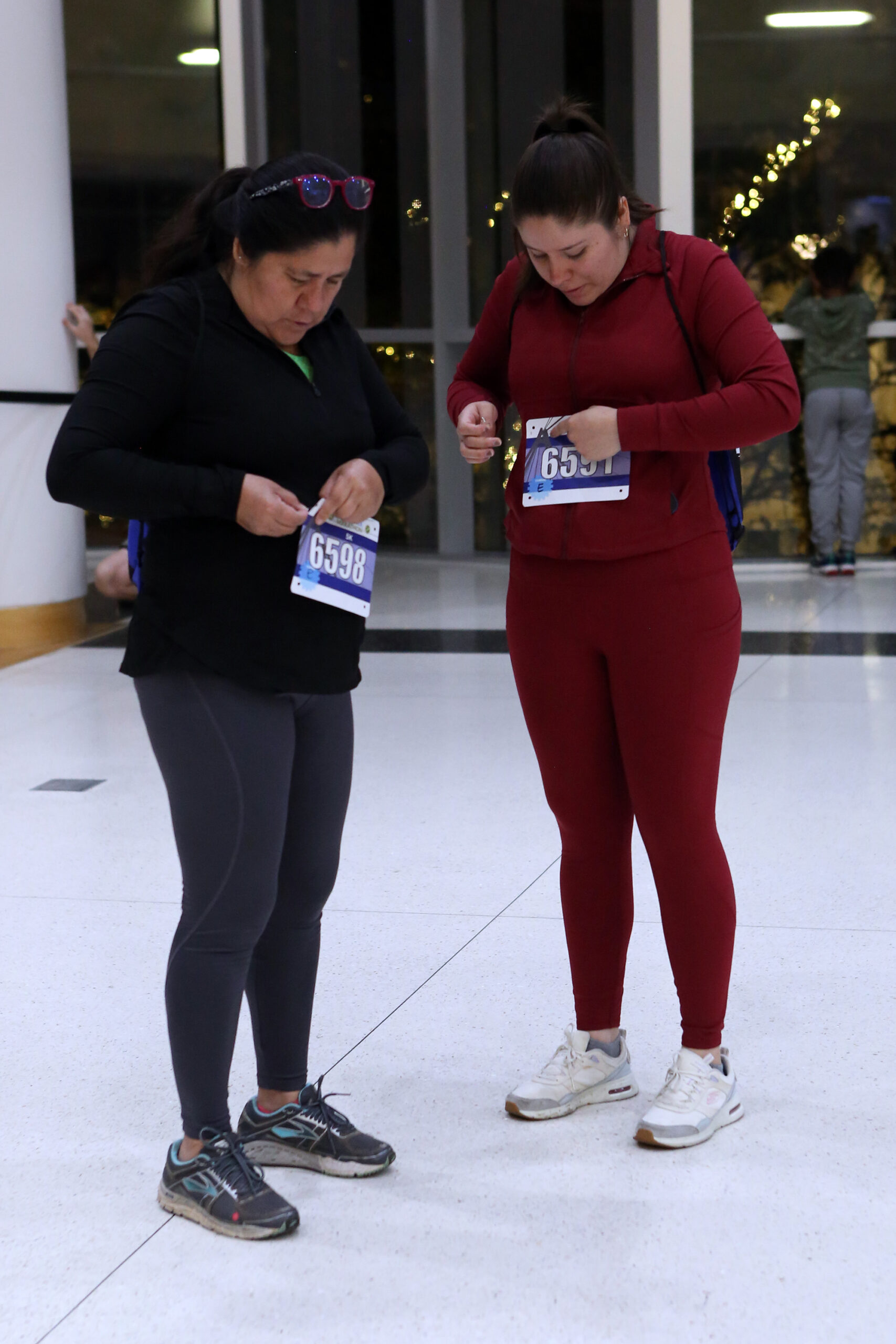Wendolyn Jimenez and Paola Fernandez put on thier bibs during the Mill Race Marathon, Columbus, Ind., Saturday, September 27, 2025