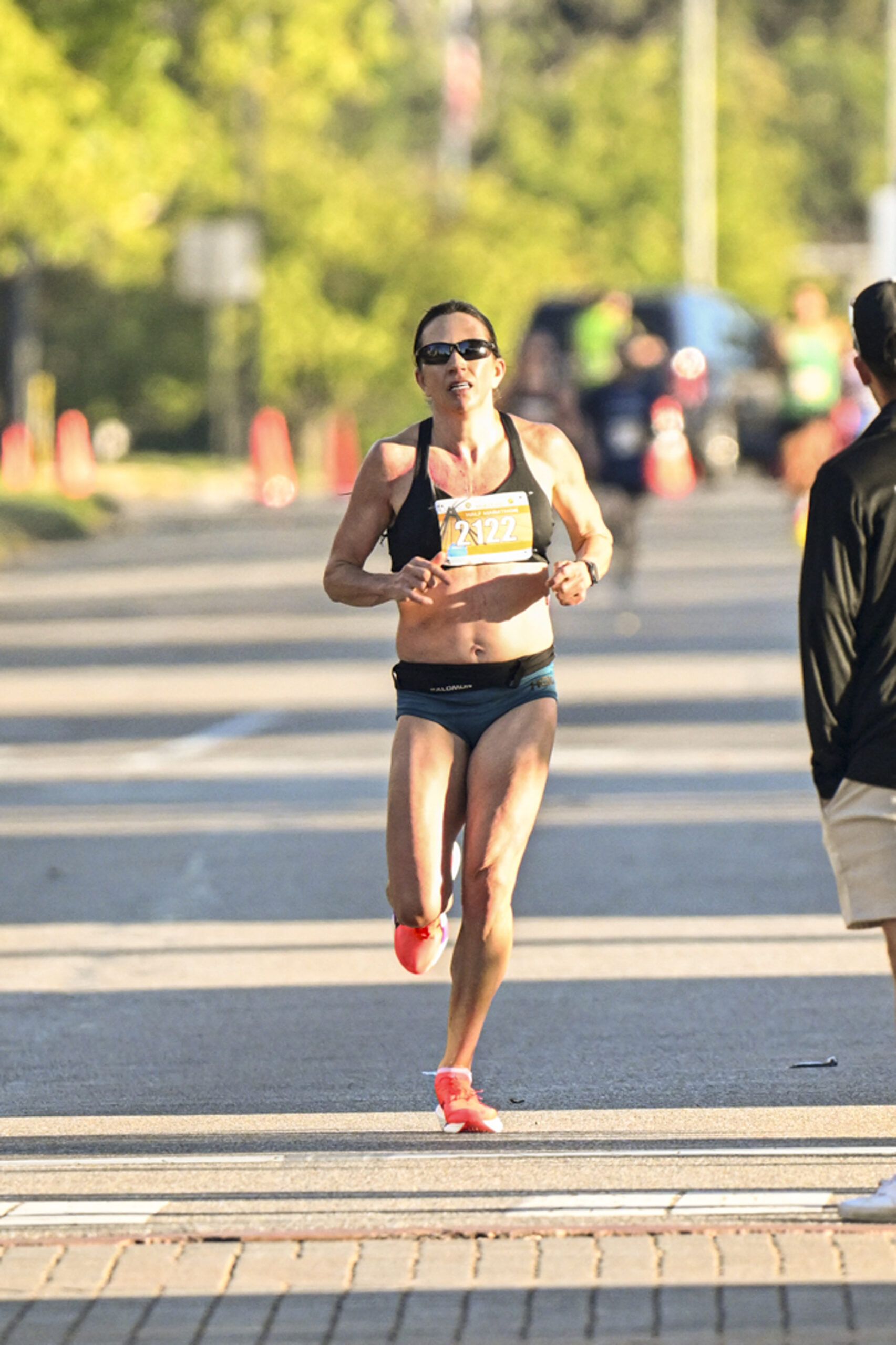 2025 Mill Race Marathon, Women’s winner, April Woo enters the final stretch for the finish line.