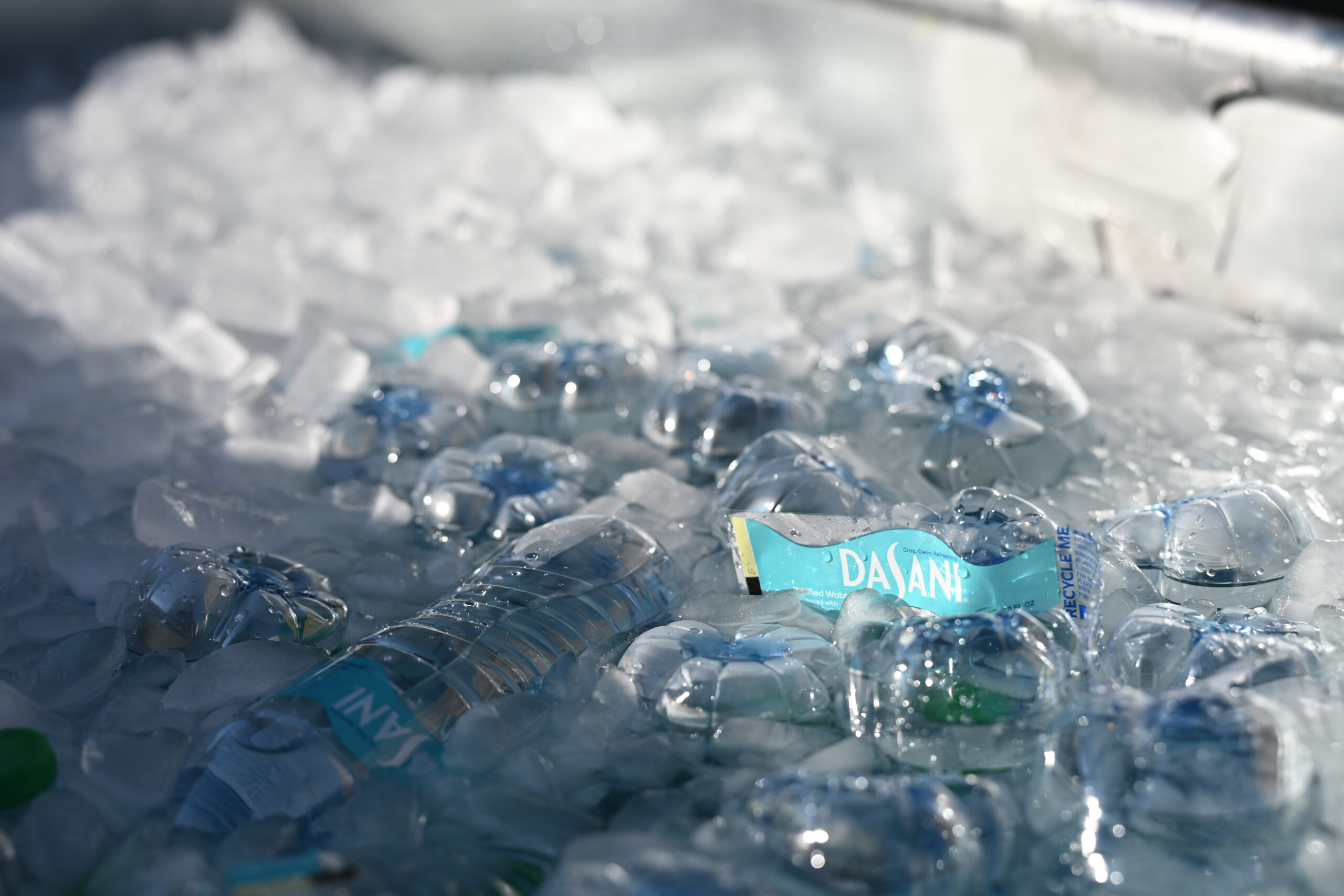 Water bottles in the cooler at the 2025 Mill Race Marathon in Columbus, IN.