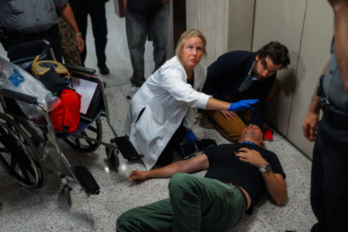 A bystander held Elibol’s head and a nurse treated him until an ambulance arrived, witnesses said. Video showed him in a neck brace as paramedics wheeled him out of the building on a stretcher. The other journalists, amNewYork police bureau chief Dean Moses and Olga Fedorova, a freelance photographer whose clients include The Associated Press, were not seriously injured.