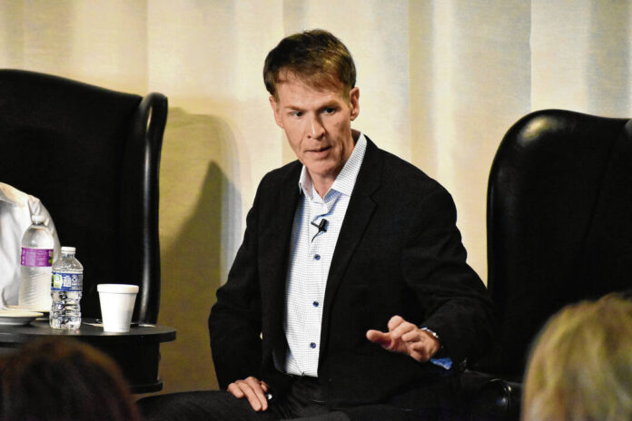 U.S. Rep. Jefferson Shreve, R-Indiana, gestures while speaking to Aspire Johnson County’s Legislation Matters luncheon attendees, Thursday, Aug. 21, 2025, at Valle Vista Golf Club in Greenwood, Indiana.