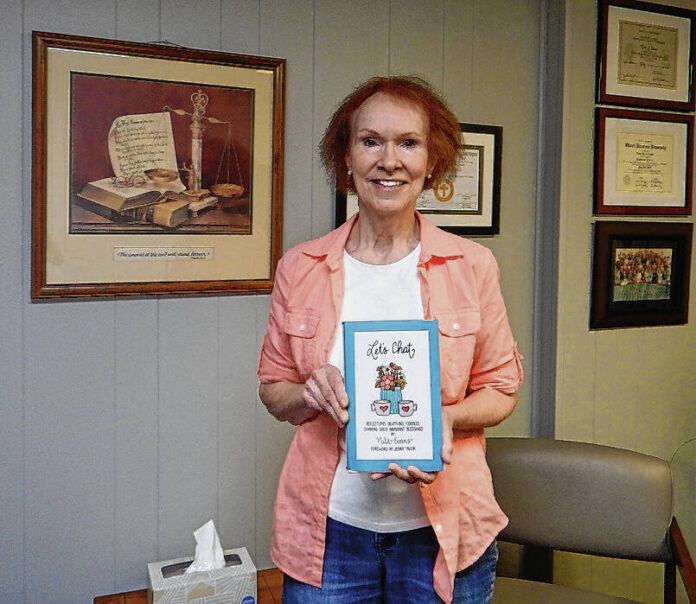 Nita Evans is shown with a copy of her new book, “Let’s Chat - Reflections, Devotions, Doodles Sharing God’s Abundant Blessings.”