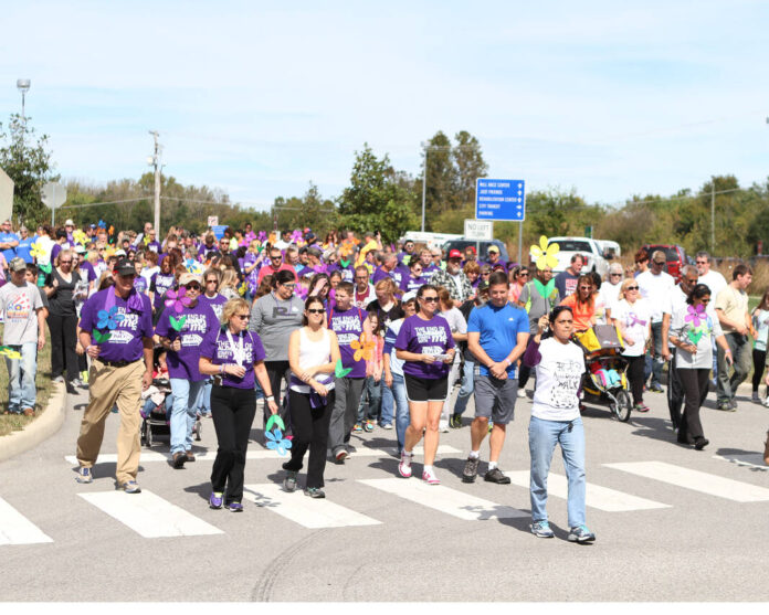 About 450 people came together in Mill Race Park to join the Walk to End Alzheimer’s, which raised an estimated $75,000 to support the Greater Indiana Chapter of the Alzheimer’s Association.