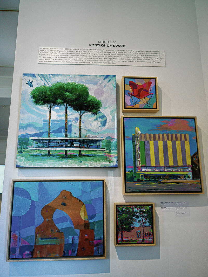 The exhibit, titled “Poetics of Space – Living with Modernism,” opened at the Columbus Visitors Center’s Gallery 506 in September, and it will be available to view until Dec. 4. The center is located at 506 Fifth St. and is open from 10 a.m. to 5 p.m. Mondays through Saturdays.