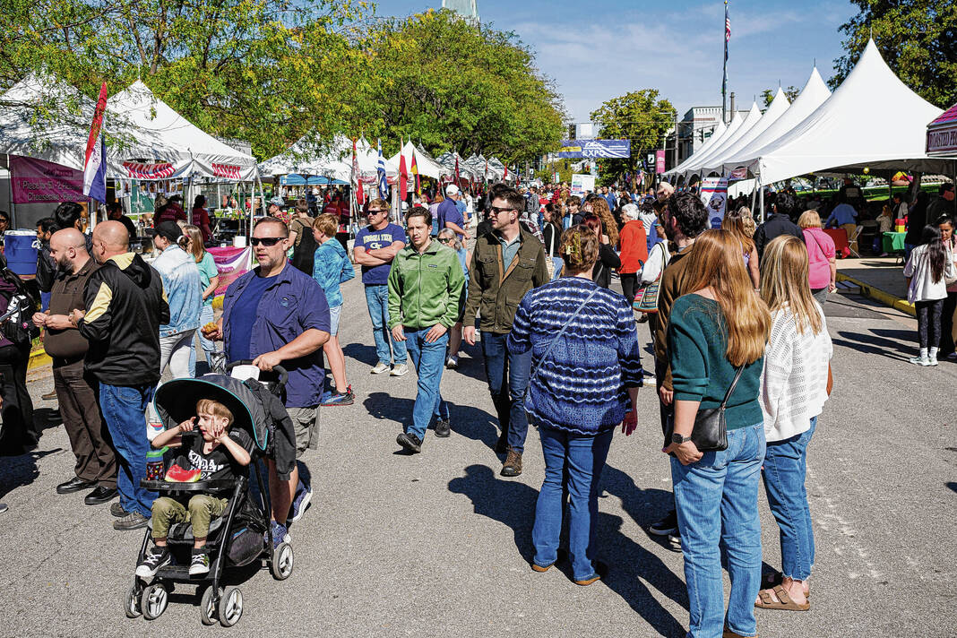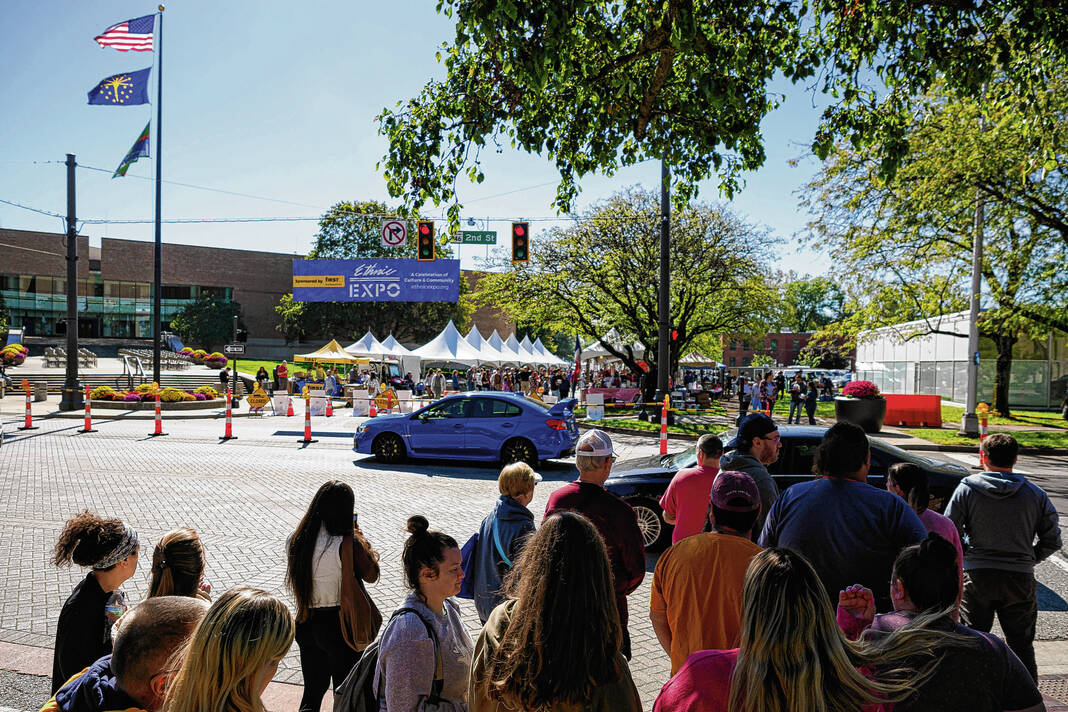 Mike Wolanin | The Republic People gather on Washington Street for Ethnic Expo in Columbus, Ind., Friday, Oct. 10, 2025.
