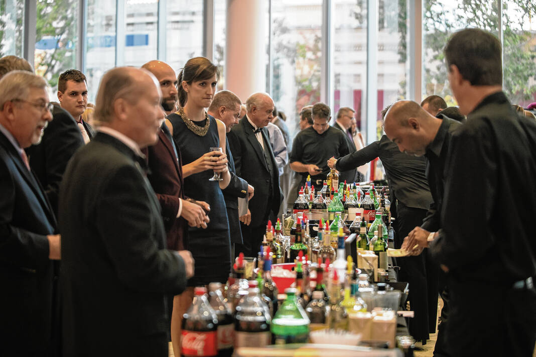 Guests line up to get drinks during the unCommon Cause fundraiser at The Commons on Oct. 16, 2015.